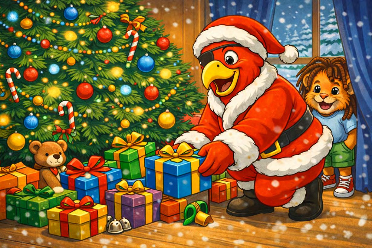 “dem Caribbean pickney dem been good dis year, an’ I come make sure dem gifts reach safe an’ sweet.” Santa clap he hands, beard jiggling with joy, as elves stop an’ stare at de captain who bring sunshine in he voice. Together dem load de sleigh with bright toys an’ warm smiles, talkin’ ‘bout palm trees, steel drums, an’ Christmas mornin’ by de sea. With a jolly cheer, Santa nod an’ say, “Let’s go, Capt’n!”