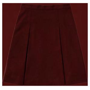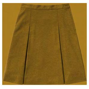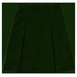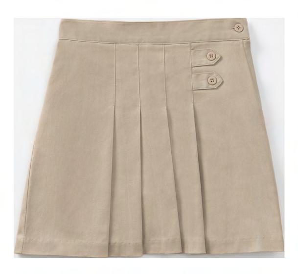 Knee-length traditional twill skirt with front and back pleats, side zip closure and 2" hem for lengthening.