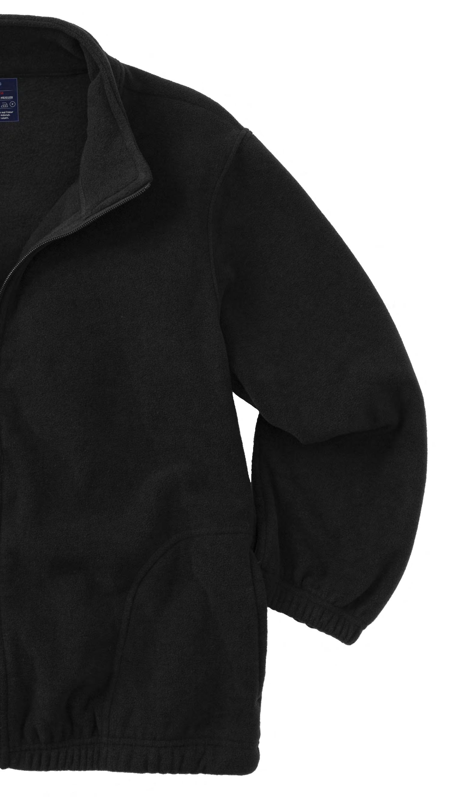 Ringspun blend of combed cotton and poly with matching ribbed collar and banded sleeves.