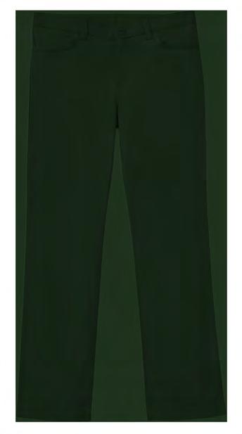 Stretch twill pant with a lower rise that sits below the natural pockets, back welt pocket, belt loops and hook-and-eye closure.
