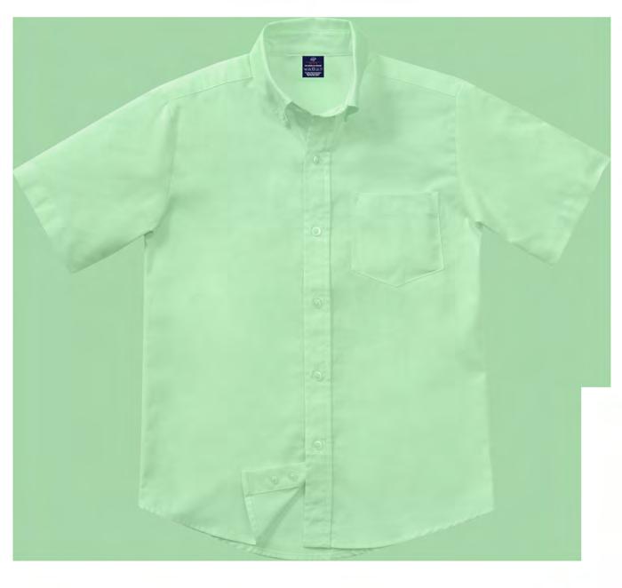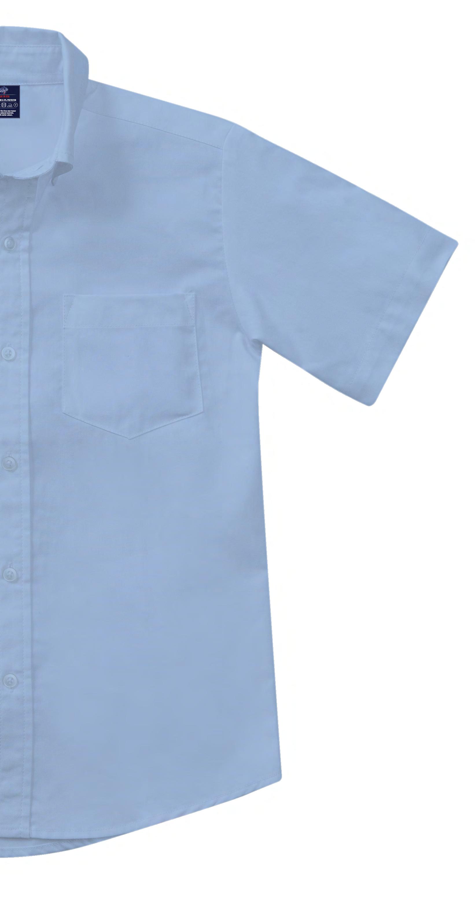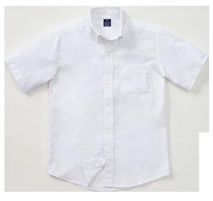 Traditional short-sleeve Oxford with button-down collar, white pearlized buttons, single pocket over left chest, back yoke and shirttail hem.
