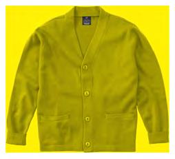 Ribbed collar, three buttons down the front with dyed-to-match buttons.