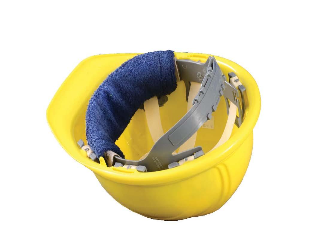 A superior performing product to keep workers heads cooler under a work helmet with fabric proven to provide thermoregulation in hotter working environments