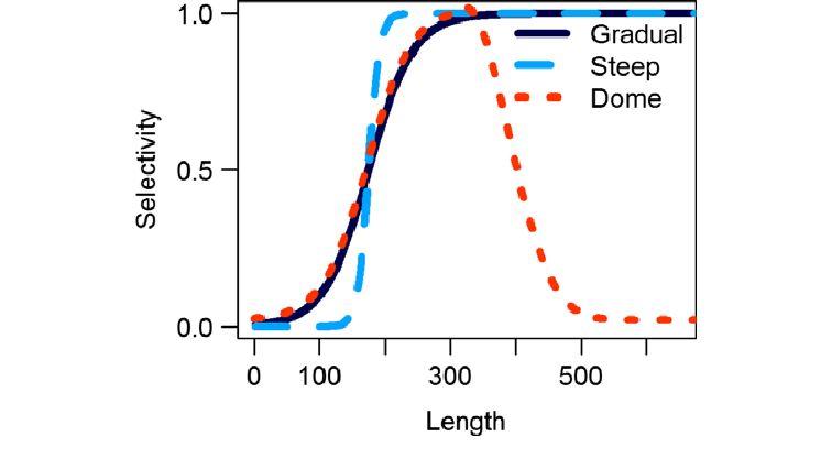 Domed shaped selectivity: assumes that the largest or oldest members of a demographic group are not fully-vulnerable to fishing