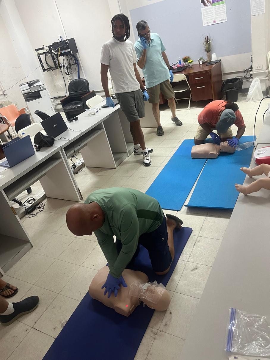 Los días 8 y 9 de junio de 2023, se ofrecieron los cursos de proveedor de oxígeno de emergencia y la primera respuesta y primeros auxilios. A través de estos cursos, los participantes aprendieron sobre las guías de atención durante emergencias reconocidas internacionalmente y cómo identificar y responder a emergencias que amenazan la vida Al ser un curso desarrollado por PADI, su contenido estuvo enfocado en las emergencias asociadas al buceo.