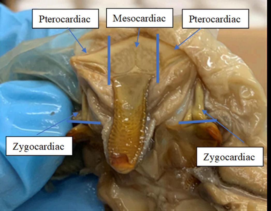 This figure shows:(A) P. argus Opened, Exposing Hepatopancreas, Stomach, and Gonads. (B) Stomach in Preservation Solution.