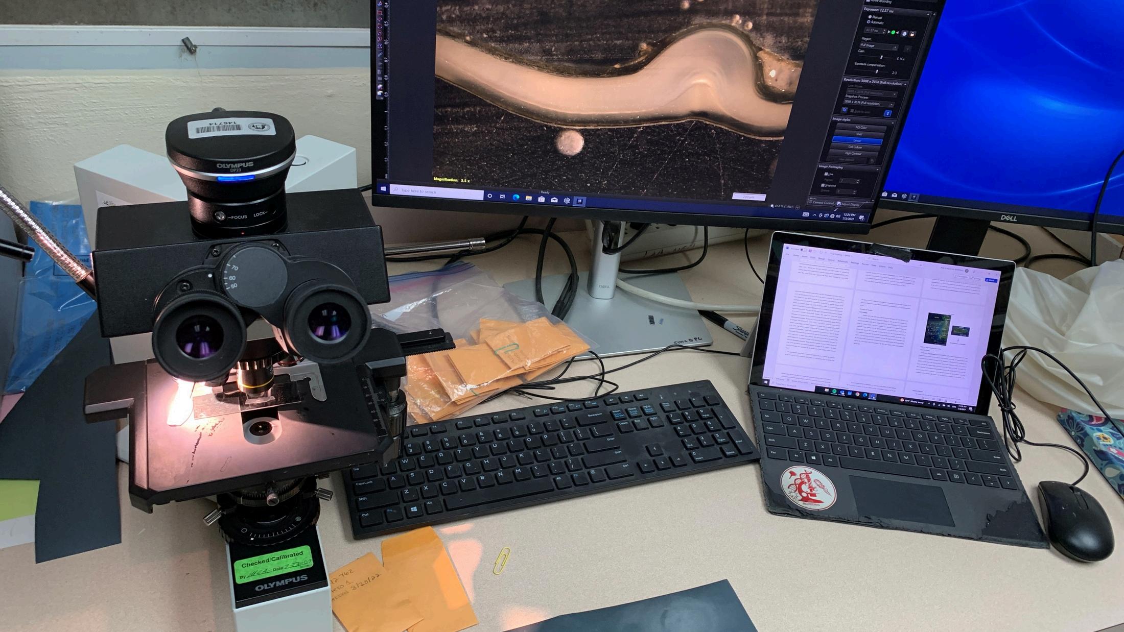 Ossicles placed in the firts layer of epoxi to be covered with a another layer of epoxi.