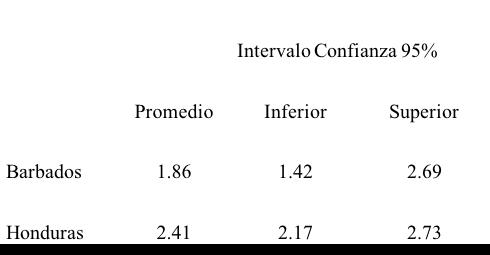 Para el propósito de estimar el peso vivo equivalente al peso sucio estimado en la Tabla 3, debemos utilizar los parámetros para el intercepto (a) y la pendiente (b) de la regresión de peso vivo como función de peso sucio que para el caso de Honduras se encuentran en la tabla que se presenta al