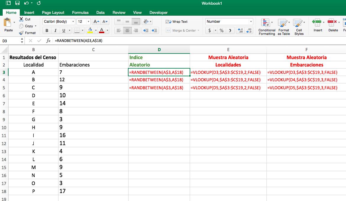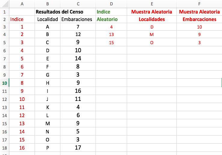 Una vez llevado a cabo el censo y analizada la información obtenida hasta conseguir un valor total de los días de pesca efectivamente operados en promedio por mes y localidad, y que se entregan en la tabla anterior, se estará en condiciones de planear las encuestas necesarias para estimar los desembarques promedio por embarcación y día de pesca. Para ello es necesario seleccionar un grupo de embarcaciones que formarán la muestra aleatoria del total de embarcaciones registradas en cada Localidad seleccionada aleatoriamente. De esta manera se tendrá que la encuesta sobre desembarques es sobre una fracción de la población estadística de localidades y una fracción de la población estadística de embarcaciones en las localidades elegidas El número de embarcaciones seleccionadas por localidad dependerá fundamentalmente de las capacidades financieras, humanas y físicas disponibles en las oficinas de pesca para la realización de las encuestas. Como se mencionara anteriormente, en este ejemplo se utilizan arbitrariamente un número aproximado de 50% de las embarcaciones identificadas en el censo en cada una de las localidades elegidas para ser muestreadas. Sin embargo, dependiendo del país, las pesquerías artesanales de CR pueden llegar a tener un número mucho mayor de localidades y también mucho mayor de embarcaciones por localidad. En esos casos habrá que seleccionar aleatoriamente muestras de localidades y embarcaciones dentro de cada localidad seleccionada teniendo en consideración si se le da mayor énfasis a las localidades o teniendo en cuenta la importancia del número de embarcaciones. El arreglo final de tamaños de muestras de localidades y embarcaciones dependerá de cuestiones de distancias, ubicaciones, accesos de las localidades dadas las capacidades logísticas que pudieran existir en las oficinas de pesca y luego la connotación que las embarcaciones seleccionadas para ser enumeradas deban ser interceptadas al tiempo de sus arribos usualmente después del medio día puesto que los viajes de pesca son mayoritariamente diarios Las selecciones aleatorias o al azar que se requieren se pueden realizar utilizando las técnicas explicadas sobre selección de muestras aleatorias que se consideraron en la sección 8.1.