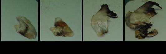 Figura 2. Niveles de limpieza desde un individuo con todos sus apéndices (Sucia) a 100% limpio (solo Filete)(Ehrhardt y Galo, 2005).