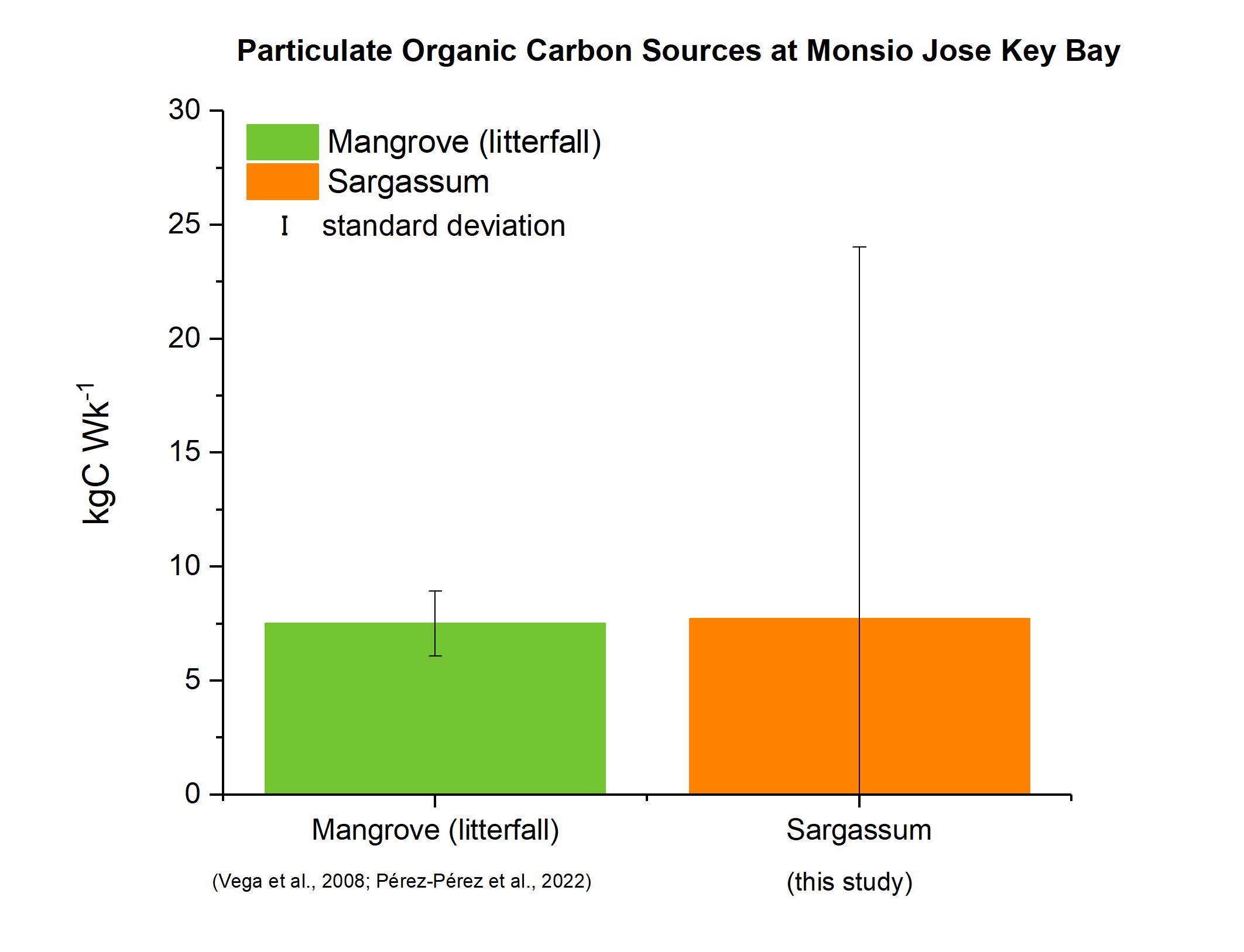 Bars= ±2SE. The low vs. Sargasso threshold used was 18,000 kg/week of Sargasso for La Parguera Marine Reserve Basin (Sargassum inundation estimates supplied by P. Molina for 2022).