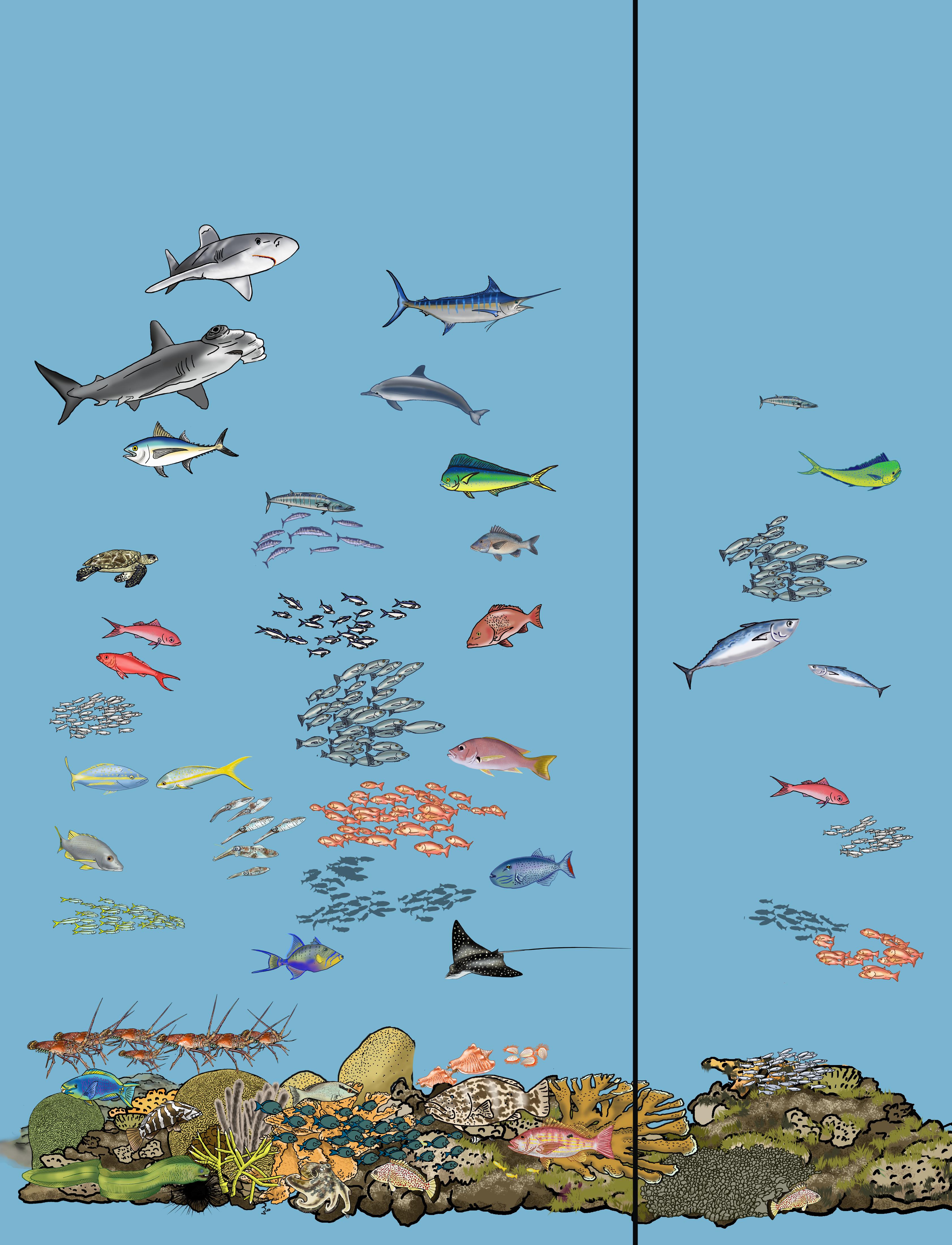 Las zonas de NO–PESCA son áreas marinas protegidas que no permiten la pesca, la minería, la perforación u otras actividades extractivas. Como resultado, las especies en zonas de exclusión pueden envejecer y crecer a tamaños grandes y saludables.