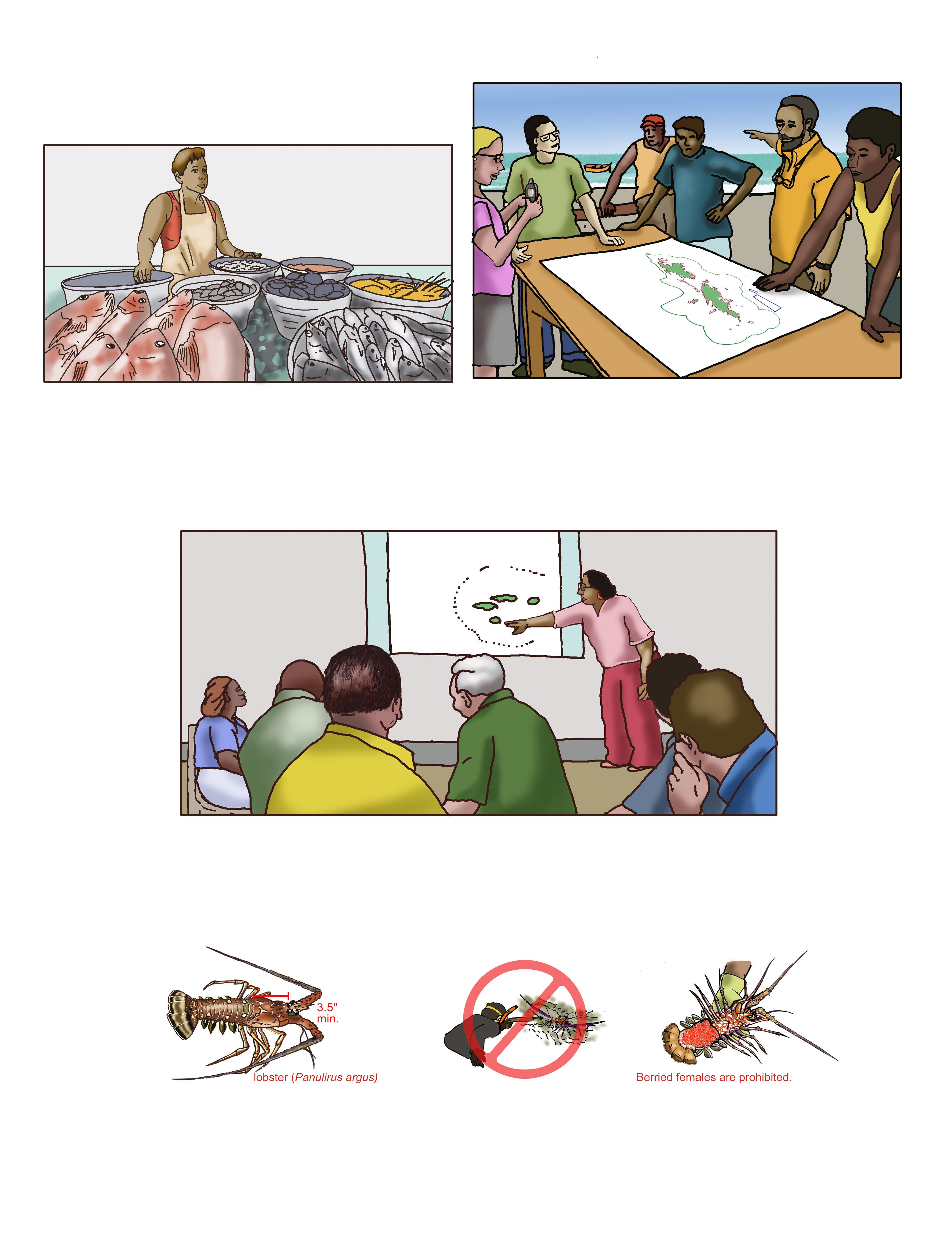 1. Participación comunitaria desde el inicio de la designación de un AMP en un sitio en particular. La comunidad incluye pescadores: comerciales y recreativos, mercados de pescado, comerciantes de mariscos, restaurantes, gobierno local, organizaciones comunitarias, escuelas, etc. O & E puede crear productos tales como: hojas informativas, folletos, videos para informar a las partes interesadas y facilitar su participación. Cuando la información proviene del gobierno, las comunidades sospechan del valor real de la AMP propuesta.