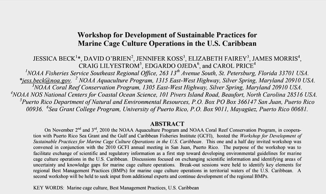 Early ocean based aquaculture ventures in Puerto Rico Suarez Caabro, 1979