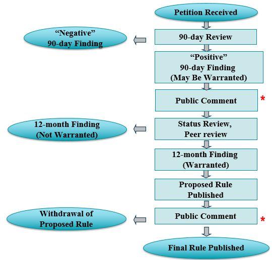 ● Después de que publicamos un hallazgo positivo dentro de los 90 días, comenzamos una revisión del estado de la especie (es decir, revisión del estado).