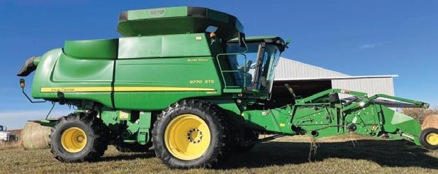 2010 JD 9770 STS Combine - Showing 2451 Engine & 1546 Thrashing Hrs, Bullet Rotor, Front Duals, Hopper Topper, JD 615P P/U Header, Green Lighted, Shedded & Integrated GPS