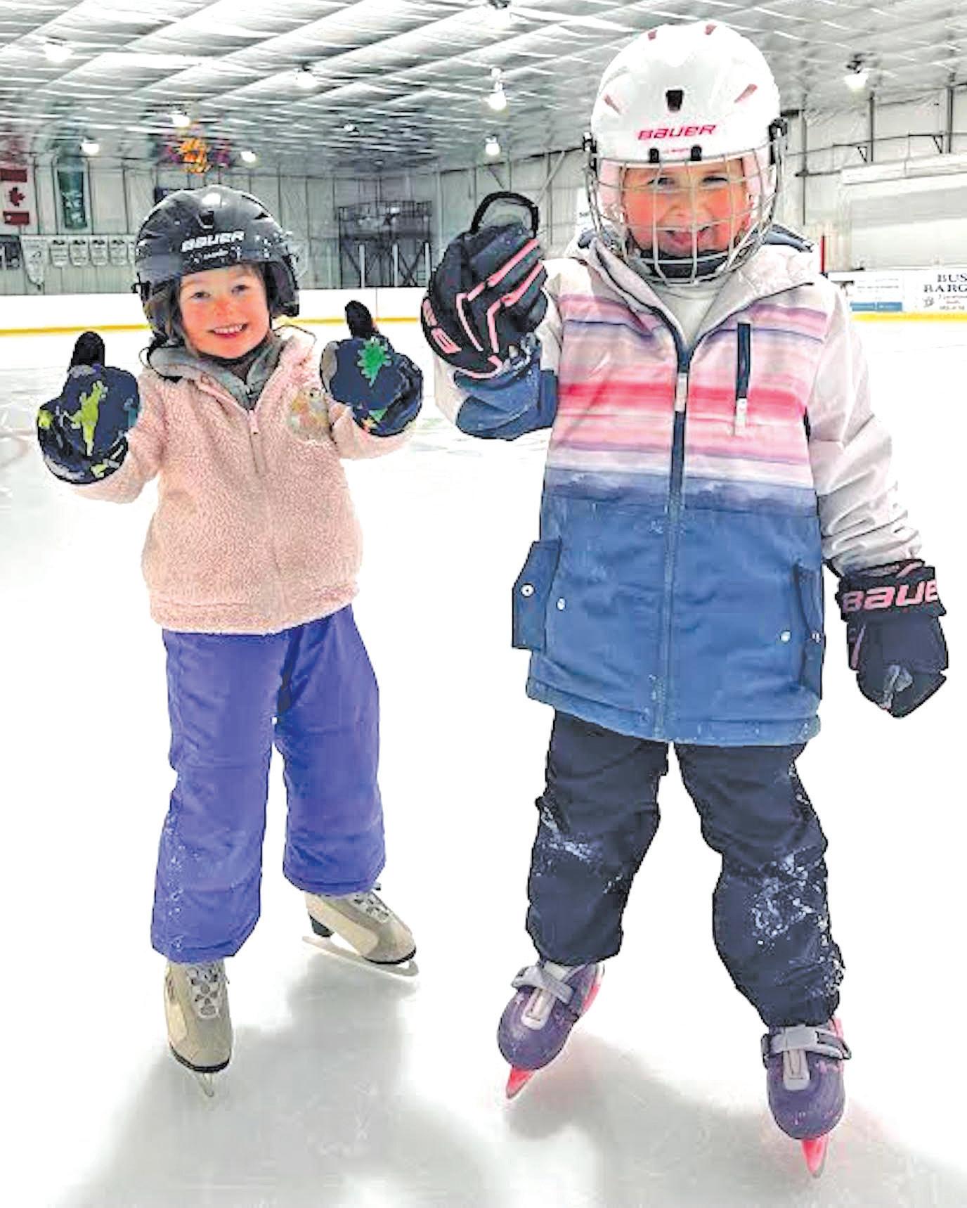 KELSEY WITHAM PHOTO Gracie (4) and Ellie (5) had the ice to themselves for Parent & Tot public skate on Wednesday morning, Dec. 4 at the Tofield Arena. Parent & Tot skate is held weekly from 10 a.m. to 11 a.m.