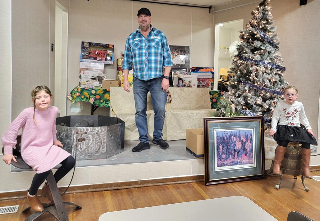 On Saturday, Dec. 7 people from the Spilstead community and surrounding area gathered for the annual Spilstead Hall Christmas Market and live auction. Seen here (L-R) Callie, Dwaine, and Hailey Van Sickle are ready to auction off the items donated by local businesses, hall and community members. LISA KUFLAY PHOTOS