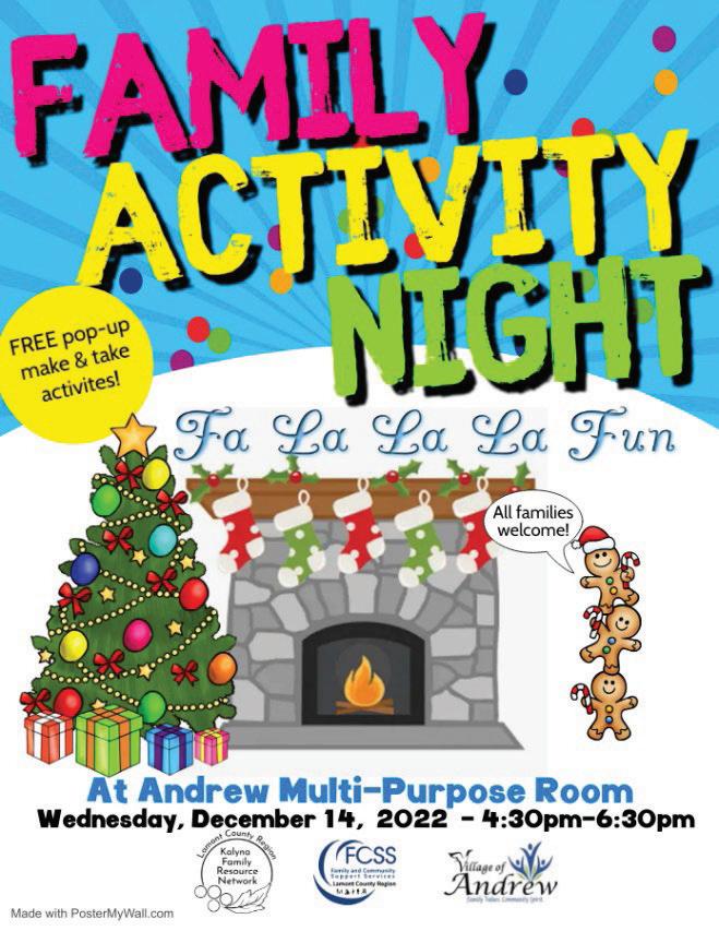 • Friday, Dec. 16 - 4pm Deadline to come in and Donate to Fill the Tree (deadline to mail cheque Wednesday, Dec. 14)