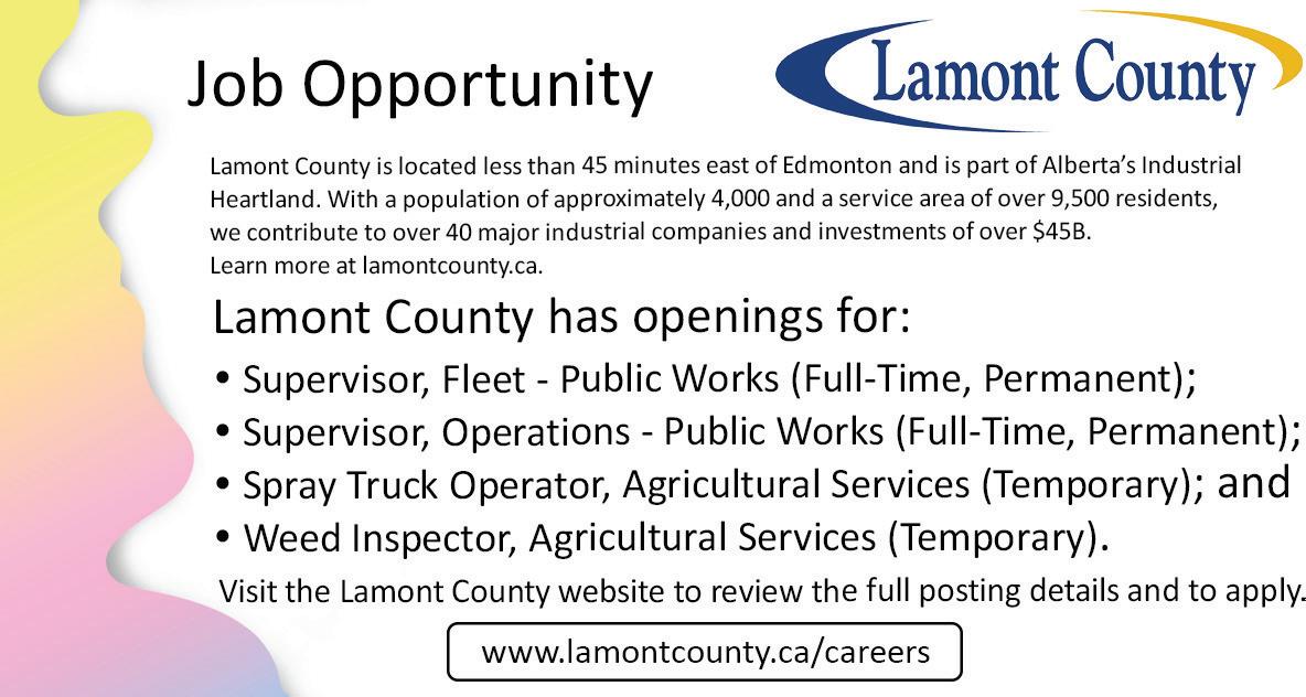 Please Note – inFocus is also available for viewing online at: www.lamontcounty.ca/communications (for those wanting to view the weekly submission as fullsized PDF and to access hyperlinks).