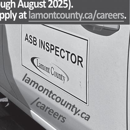 Coffee Talks – see lamontcounty.ca/coffeetalks for updates. 2025 scheduling will be posted soon. Engineering studies and content related to the proposed process water and intake can be accessed at lamontcountynow.ca/about-us/areaprofile/planning. Updates are published when/as applicable. Lamont County’s 2025 Budget is now approved. See lamontcounty.ca/news for details. The Lamont County 2025 MUNICIPAL ELECTION Nomination Package is now available at: lamontcounty.ca/governance/2025-municipalelection (under Nomination Process).