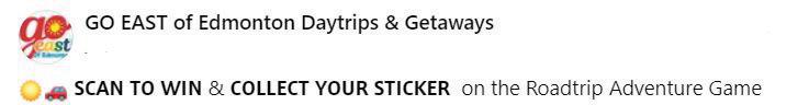 There are many things to do east of Edmonton. Take a tour or day trips across the region, including Ukrainian Cultural Heritage Village (sticker station); visit goeastofedmonton.com/ and complete the Road Trip Adventure Game. Win prizes!