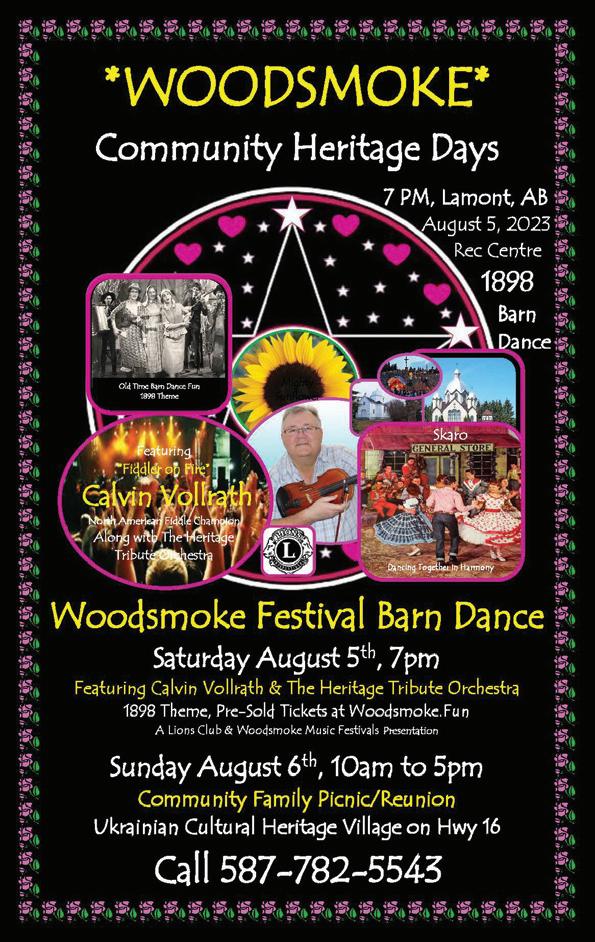 Featuring renowned fiddlers Calvin Vollrath and celebrated Fire Chief, Charlie Gargus. In keeping with the 1898 theme, cost to attend is $18.98 +GST. Tickets can be purchased online at WOODSMOKE.FUN