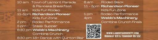 Heritage Day: Lamont County offices/buildings are closed Aug. 4 for the stat. Local County and municipality events, farmers’ markets, community services programming (including summer camps), community celebrations and activities, Council and committee meetings, etc., can be found at: lamontcounty.ca/eventscalendar