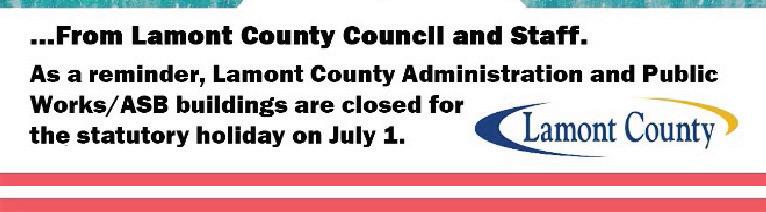 Next Regular Council Meeting: Tuesday, June 24 | Next ASB meeting: Wednesday, August 13 lamontcounty.ca/governance/agendas-minutes | lamontcounty.ca/agendas-minutes-asb