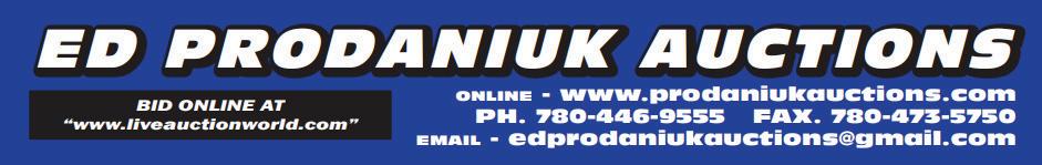 per Item. License No. 165690 Welding Truck 1988 Dodge 350 1 Ton 2wd Welding Truck w/ 360 V8 Gas Engine, 4 Spd Manual Trans, 6,000 Kms on a New Engine. Original Owner, Only 81,000 Kms Total on the Truck & Extremely Nice Condition. Sells with a 11' Welding Deck, Lincoln SA 200 Welder & Cables, Large Cabinets, Showing 6916 Hrs on the Welder & Supplies Welding Tools & Supplies Lincoln SA200 Trailer Mtd. Portable Welder w/ Only 486 Hrs & Cables Miller Dial Arc 250 Amp AC/DC Welder w/ Cables Acklands 1200 Mig Welder w/ Alum Welding Attach 2 - 2"x4" Pipe Bevel Machine 1 - 4"x8" Pipe Bevel Machine Several Oxy/Acetylene Cutting Torch Sets (No Bottles) 2 - Air Arc Gouger Attach Large Assort of Welding Rod Welding Rod Oven Assorted Welding Tables & Vices Iron Large Assort. of New Iron on Racks New Plate Iron Quantity of Round Shaft - Assorted Sizes & Lengths Assorted Used Iron Assorted Pipe Stands & Racks Trailer 1996 Trail Tech 16' T/A Car Hauler Trailer w/ Ramps & Rear Stabilizer Stands Shop Tools & Equipment Mac 20 Drawer Tool Box & Chest w/ All Contents, Tools, Air Tools & Sockets 12'6"W x 11'4"H Steel Gantry on Wheels w/ 2 Ton Chain Hoist Dominion Industrial Band Saw Dayton Upright 2 Stage 5 Hp Air Compressor Summit 11x13 Lathe w/ Attachments & Chucks HD 50 Ton Shop Press Drill Press & Stand Nider 50B HD Drill Press (Condition Unknown) 9' High Warehouse Ladder on Wheels Westward Tap & Die Set Cut Off Saws, Bench Grinders Power Tools, Pipe Wrenches & C Clamps, Jack Stands & Floor Jacks, Creeper, Gear Pullers & Grease Guns Shop Supplies & Fluids Plus Much Much More Miscellaneous Metal Cabinets, Commercial Shelving & a Shelving Unit 6 - Mercury Vapor Shop Lights Work Lights Assorted Truck Hitches Assorted Fuel Transfer Pump Bumper Jack 2 - Chain Come-A-Longs Chain & Boomers Set of 5 School Lockers Tiger Torch 4 - P215/65R17 Tires Onan 3500 Watt Gen Set - Needs Carb Work, Presently Not Running Car Ramps, Nuts & Bolts, Fire Extinguisher, Brooms & Shovels, Pipe Clamps & Jerry Cans Office Furniture & Desk Plus Much More MACHINERY ***All Major Electrical Machinery is Single Phase*** Viewing is Available from March 27th, 2023 to April 4th, 2023 9:00 a.m. to 4 p.m. or by Appointment The Office Trailer will be on Location on April 5th, 2023 Only from 9:00 a.m. to 4:00 p.m. Otherwise Payment must be made by coming directly to our Hwy #16/Rge Rd 185 Office or Rimbey Office. Load Out will be Available from April 5th to April 8th, 2023 from 9 a.m. to 4:00 p.m. or by Appointment. All Items Must be Removed No Later than April 8th, 2023 at 8:00 p.m. Machinery Terms & Conditions: Cash, Cheque or Debit Card. Online Bidding Fees Apply - 4% up to a Maximum of $800.00 per Item. 3.5% Admin Fee Will Be Charged on Credit Cards. G.S.T. Will Apply On All Items, All Items Must Be Paid For Prior to Pick Up. Listings are Subject to Additions & Deletions Owners Phone Numbers: (780) 385-2342