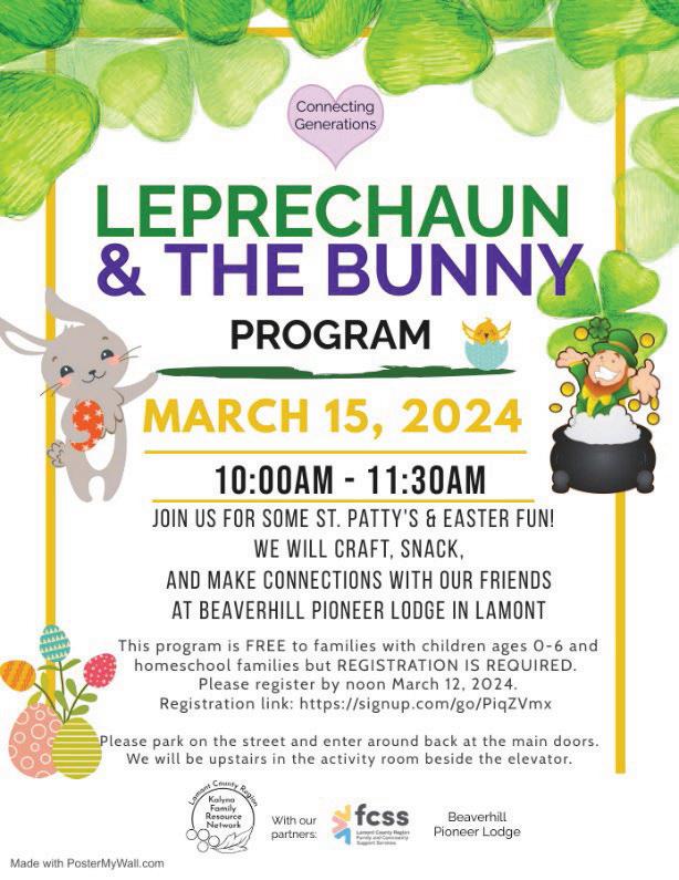 6. Connecting Generations: Mar, 15 (Leprechaun and the Bunny) signup.com/go/LDuiNKL