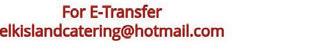 For e-transfer: elkislandcatering@hotmail.com