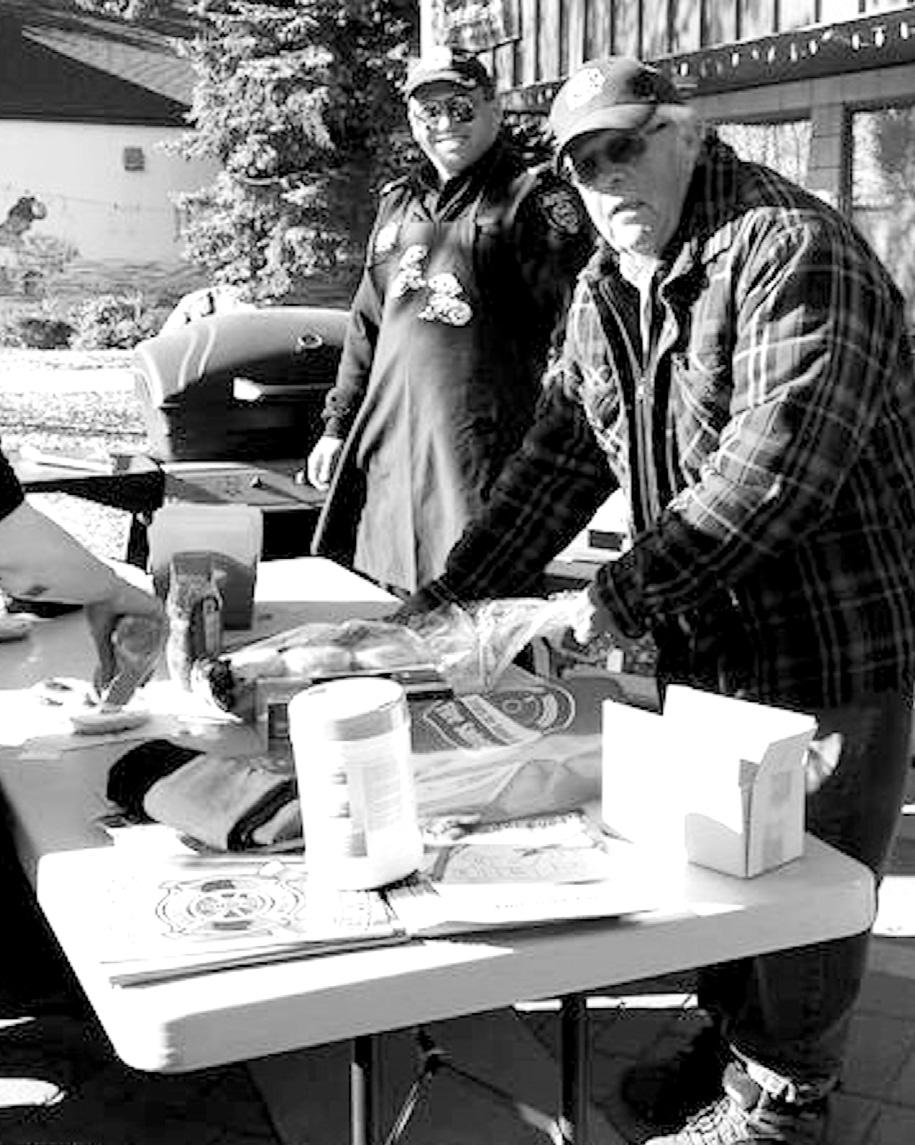 Former Lamont high school teacher turned hypnotist, Wayne Lee, poses with Mundare fire chief Glenda Dales before the Mundare New Firehall Fundraiser Oct. 15. Photo:Jana Semeniuk