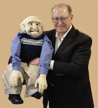 Performing a mixture of standup comedy, sleight of hand, magic tricks, and ventriloquism