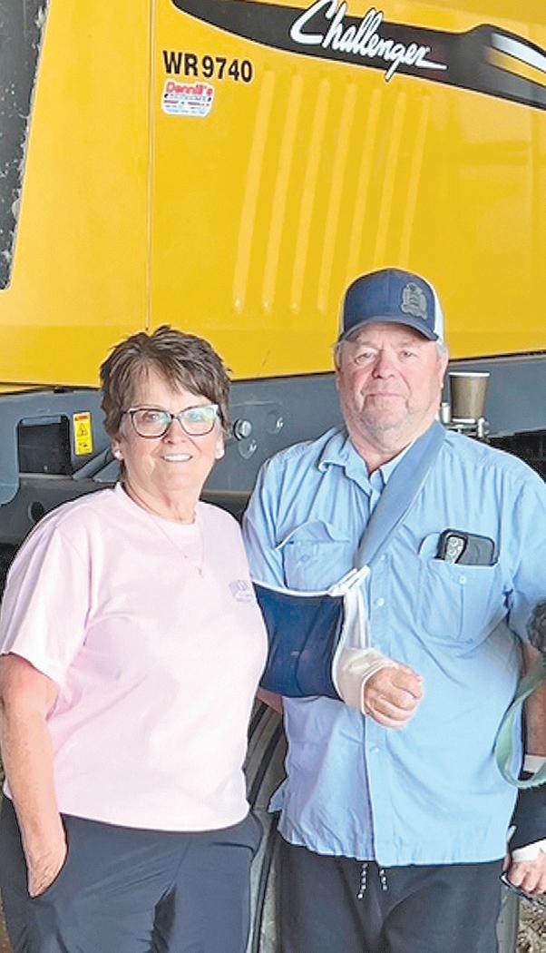 On Saturday, Sept. 13, a group of neighbours gathered northwest of Irma to combine Bob and Susan Barss’ wheat fields. Bob had sustained broken wrists and a dislocated shoulder in a fall off a grain trailer on Aug. 18. He underwent surgery in Camrose and is recovering well.