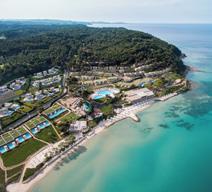Providing dazzling views over Mount Olympus, the shimmering Aegean Sea and a scattering of ancient olive groves, Sani Club occupies the most beautiful of locations. In addition to its large range of amenities, the resort is an ideal place to enjoy a spectacular holiday with the whole family, thanks to its luxurious, one and two-bedroom family suites. The 253 contemporary rooms and suites are spread across low-rise bungalows set into the hillside. Each features balconies, terraces and floor-to-ceiling windows that provide stunning views. Facilities include a fitness studio, gym, access to a range of sports facilities and coaching at the Sani Academies, a range of nonmotorised watersports, heated indoor spa pool and outdoor infinity pools, the Sea World Diving Centre with professional PADI instructors, Sani Water Park, and a spa offering a variety of treatments.
