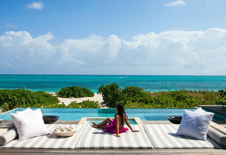 Turks & Caicos chain, that feeling of blissful isolation is dialled up even further. Ambergris Cay is a 1,100acre private island with its own airstrip, a 20-minute flight or twohour boat ride from Providenciales. Just 17 bungalows and nine villas are scattered across the island, each with a private pool, and you’ll be provided with a golf buggy to explore at your own pace. This is a true luxury all-inclusive, and the ever-changing menus at the two exquisite beachfront restaurants will surprise and delight you. Bliss out at the Elevate Spa, enjoy guided nature walks and keep in shape at the fitness pavilion, equipped with Peloton bikes and a yoga deck. One of the highlights of the hotel is the Floating Hangover Bar experience at Little Ambergris Cay, which is offered to guests three times a week on complimentary basis.