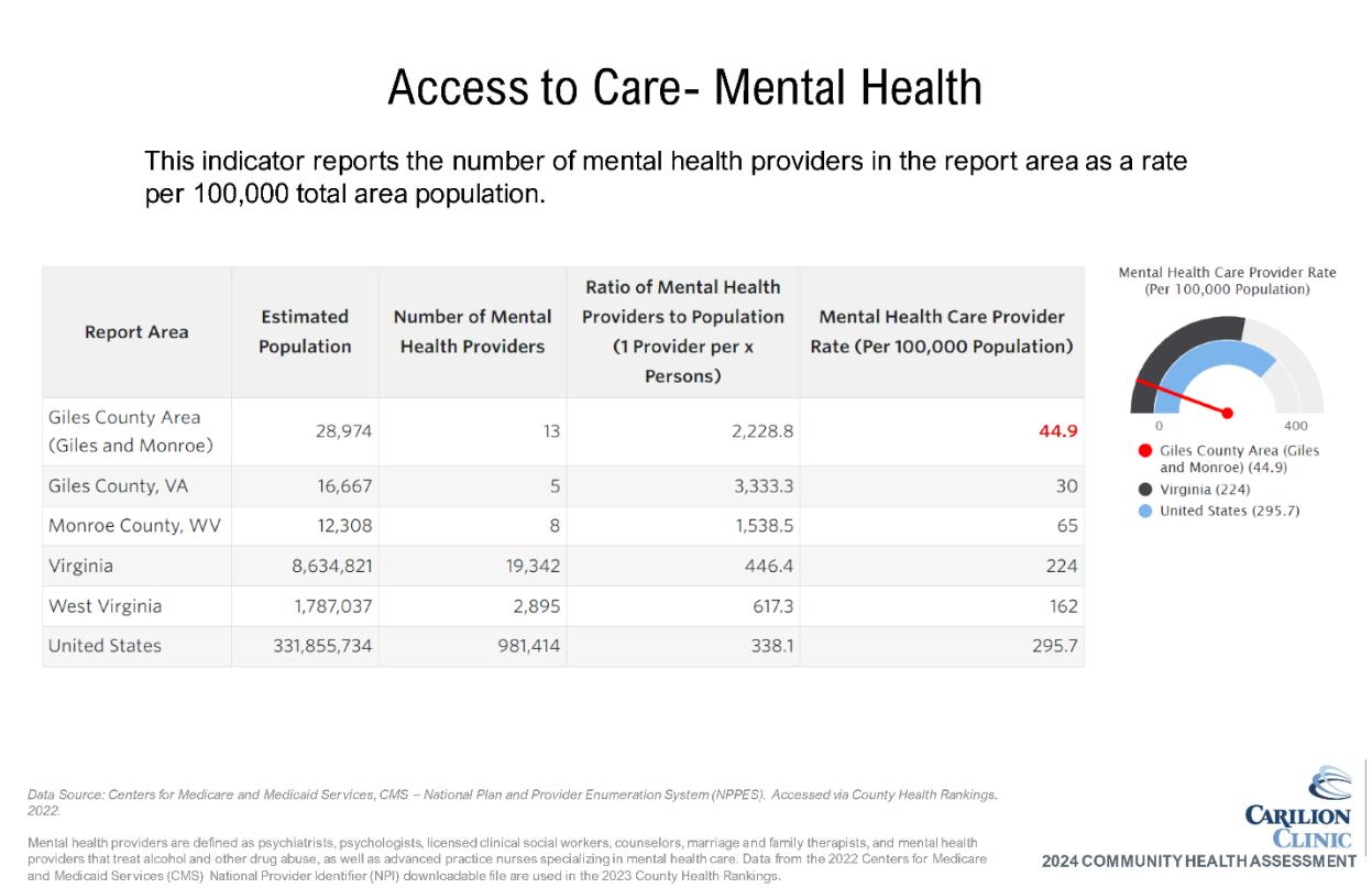 This document has been produced to benefit the community. Carilion encourages the use of this report for planning purposes and is interested in learning of its utilization. Comments and questions are welcome and can be submitted to Carilion at communityoutreach@carilionclinic.org.