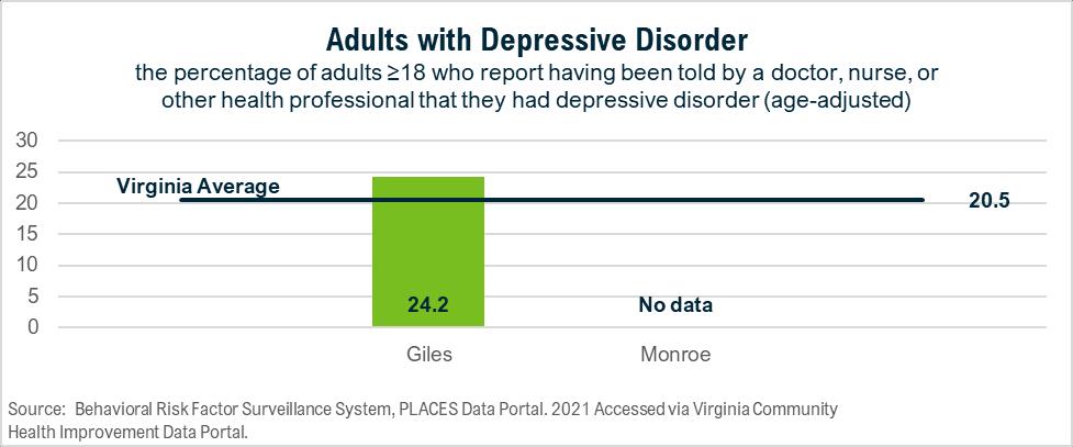 • Rate of new diagnosis of hepatitis C infection is higher in Giles than VA, no data for Monroe at this time
