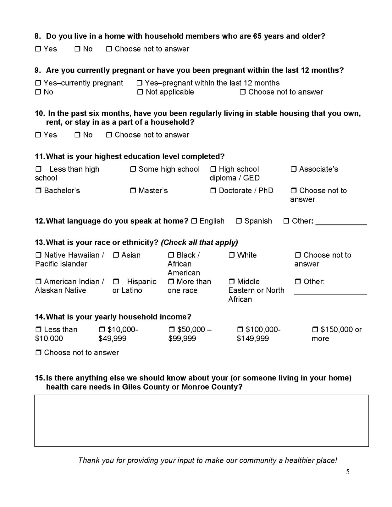Members of the leadership team reviewed all documents prior to publication. Every effort has been made to ensure the accuracy of the information presented in this report; however, accuracy cannot be guaranteed. Members of the Giles Area CHAT cannot accept responsibility for any consequences that result from the use of any information presented in this report. Carilion began conducting CHAs prior to the IRS adoption of the 501(r)(3) standard which requires not-for-profit hospitals to conduct a Community Health Needs Assessment (CHNA) every three years. While meeting the CHNA requirement, Carilion maintains the longstanding formal name Community Health Assessment for our process and reports. A crosswalk of this document based on the 501(r)(3) standards can be found in Appendix A.