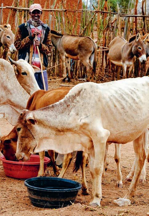 Früher war alles besser“ – gerne sagen wir diese Phrase leichtfertig dahin. Im Fall von Aliyi aus Äthiopien trifft das aber wirklich zu: Früher besaß Aliyi 20 Rinder, von deren Fleisch und Milch seine Familie lebte. Früher baute er gemeinsam mit seiner Frau auch Mais und Hafer an. Und früher lebten seine Kinder noch bei ihm und hatten Hoffnung auf eine gute Zukunft. Heute haben bereits vier seiner Söhne das Dorf und die Familie verlassen. „Sie wollten nicht gemeinsam mit uns an Hunger sterben“, erzählt Aliyi. Denn der Hunger quält die Fa milie schon mehrere Jahre, seitdem die Dürre sich immer weiter verschlimmert hat. Sieben von Aliyis Rindern verhungerten, die restlichen Tiere musste er verkaufen, weil es wegen des mangelnden Regens keine Ernte gab. Mais und Hafer wachsen nicht mehr. Und auch Aliyis Zuversicht schwindet.