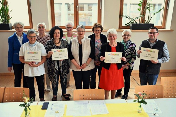 3.000 € en faveur des épiceries sociales « Caritas Buttek » et 3.000 € pour la halte de nuit pour femmes. Merci au WeltButtek Esch.