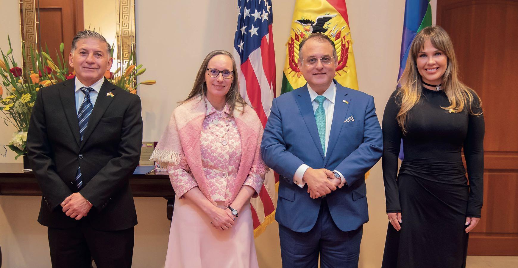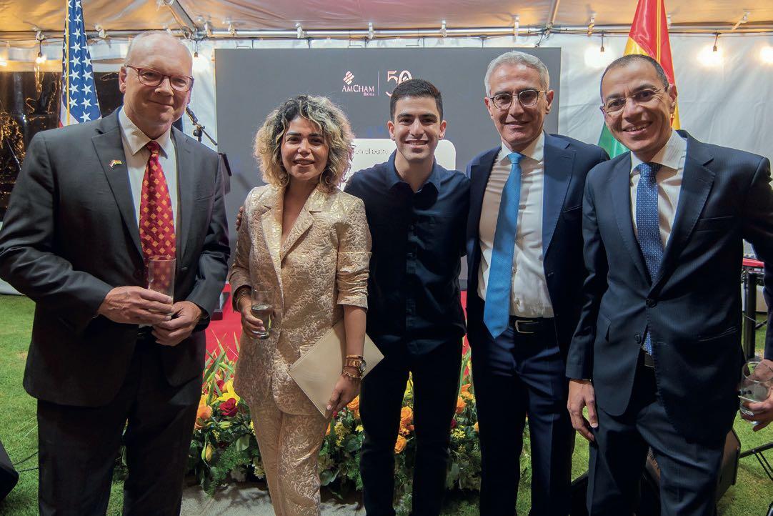 La Cámara Americana de Comercio de Bolivia celebró su 50° aniversario y el Cóctel de Embajadores en la Residencia de la Embajada de Estados Unidos. El acto oficial contó con las palabras de la Jefa de Misión de la Embajada de los Estados Unidos, Sra. Debra Hevia, y Luis Fernando Saavedra, presidente del Directorio de AmCham. En la ocasión se reconoció a dos fundadores, a la Empresa COBEE y a Fernando Aguirre Bastos y por su contribución, apoyo técnico e institucional a José Ribero Calvimontes. Autoridades diplomáticas, empresarios e instituciones brindaron por el rol de AmCham en el fortalecimiento del ecosistema empresarial del país.