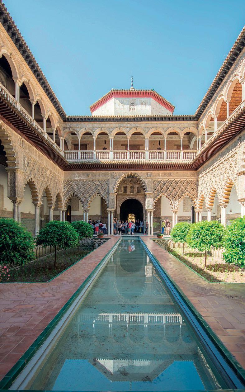 de ensueño. El Real Alcázar, con sus jardines infinitos y arquitectura mudéjar, transporta al visitante a épocas de esplendor y realeza. Para quienes buscan exclusividad, los barrios de Santa Cruz y Triana brindan calles empedradas, artesanía única y un ambiente íntimo que invita a perderse entre su historia y sus leyendas.