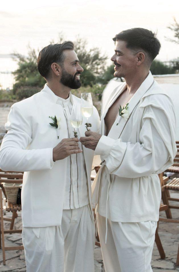 Julio González y Alberto Olmedo Serrano celebraron su unión con una ceremonia y firma de actas en Sa Punta des Molí, el histórico molino frente al mar declarado patrimonio de las Islas Baleares; luego, familiares y amigos compartieron una cena en el Ibiza Gran Hotel GL, con una exquisita ambientación a cargo de Eiviss Garden. Los novios vistieron trajes del diseñador boliviano Daniel Rúa, inspirados en el estilo ibicenco para un aire fresco y elegante. La noche culminó con una fiesta inolvidable en el exclusivo Club Chinois.