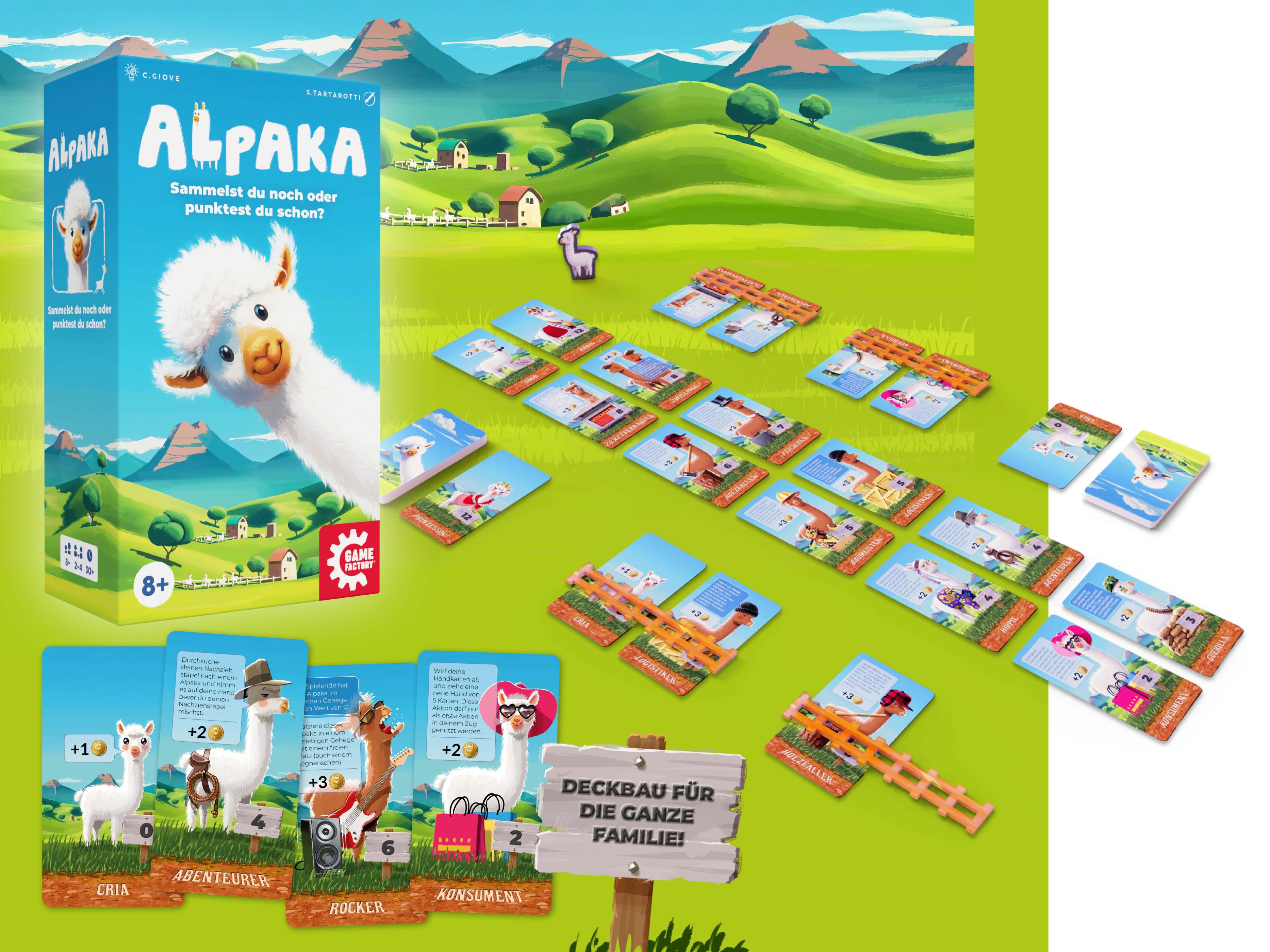 Ob Holzfäller, Rocker oder Bibliothekar – kaufe die besten Alpakas und spiele sie zum optimalen Zeitpunkt, um dein Einkommen zu erhöhen oder ihre unterschiedlichen Spezialfähigkeiten zu nutzen. Optimiere dein Deck und baue Gehege für deine auschigen Gefährten, denn nur artgerecht untergebracht bringen sie dir wertvolle Punkte!