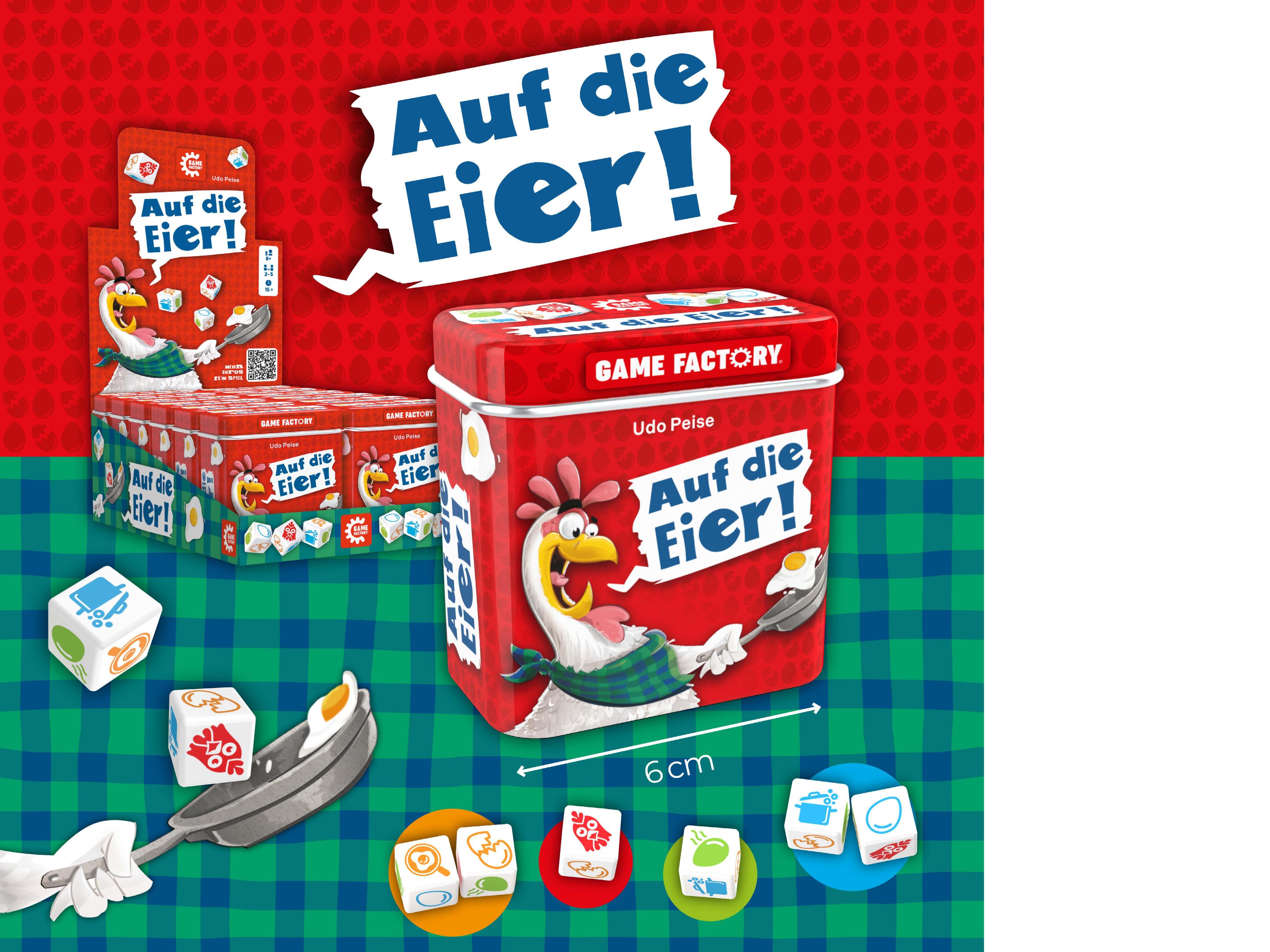 Nach dem Würfel-Hit Auf die Nüsse geht es jetzt AUF DIE EIER … fertig, los! Anders als Nüsse müssen Eier aber auch zubereitet werden, da führt am Herd nichts vorbei. Erwür e dir die punktereichsten Kombinationen aus Spiegeleiern und Bratpfannen, Frühstückseiern und Kochtöpfen und schnapp dir auch die inken Hühner – wenn du kannst. Aber hüte dich dabei vor den faulen Eiern oder dein Start in den Tag ist schnell im Eimer.