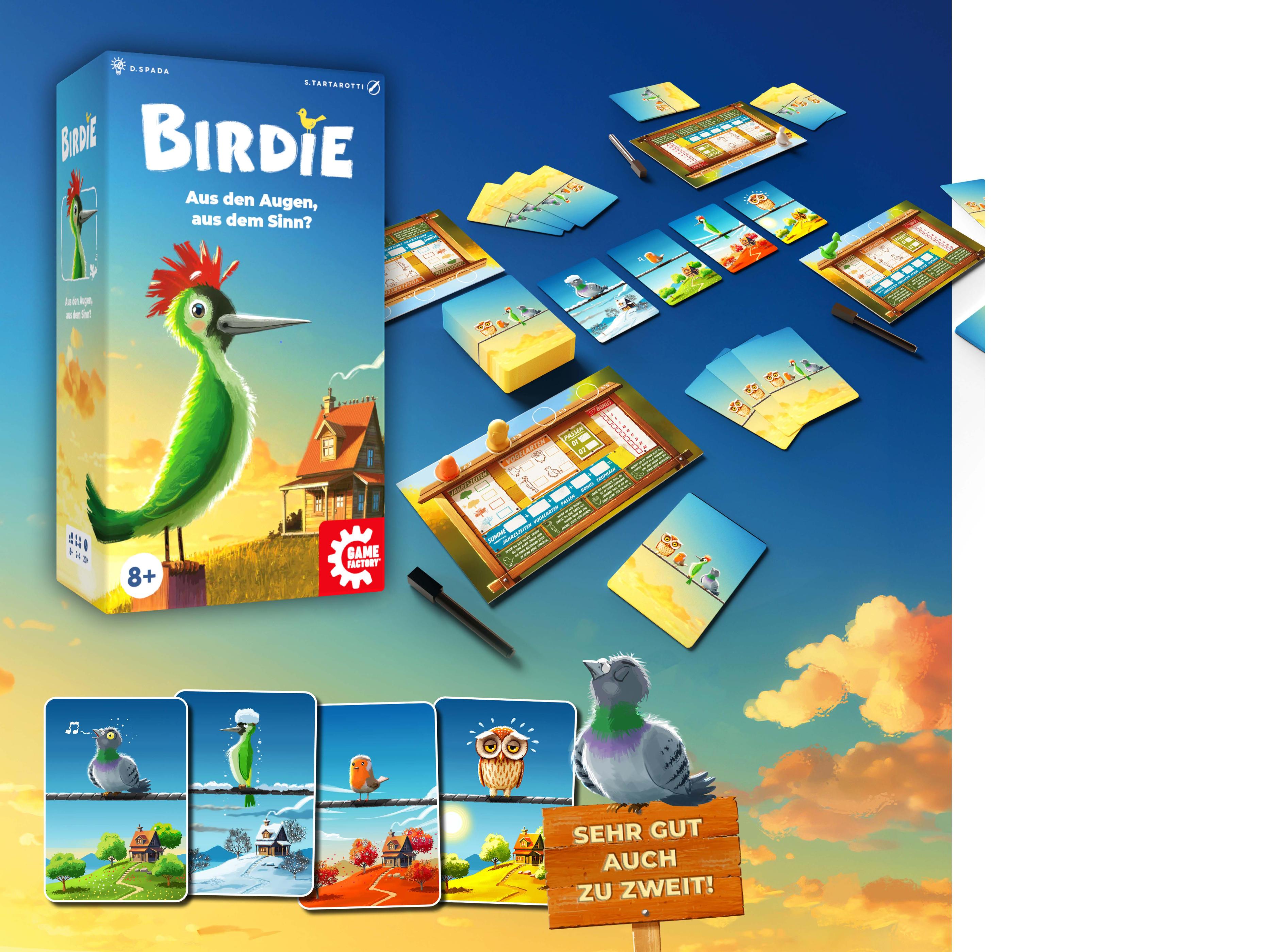 Dieses Kartenspiel schießt den Vogel ab! Neun wirklich schräge davon, um genau zu sein. Um zu gewinnen, musst du nur alle neun sammeln – am besten möglichst viele von jedem. Aber Vorsicht, nur in ungerader Anzahl geben sie am Ende auch Punkte! Ein Glück sind auf der Rückseite immer zwei Vögel abgebildet, aber weiß der Geier, welcher davon es wirklich ist! Da schimpft man auch mal wie ein Rohrspatz, wenn man sich eine ganze Menge Punkte versemmelt. Vielleicht hättest du ihn doch besser wie ein Kuckucksei einem deiner Gegner untergejubelt?
