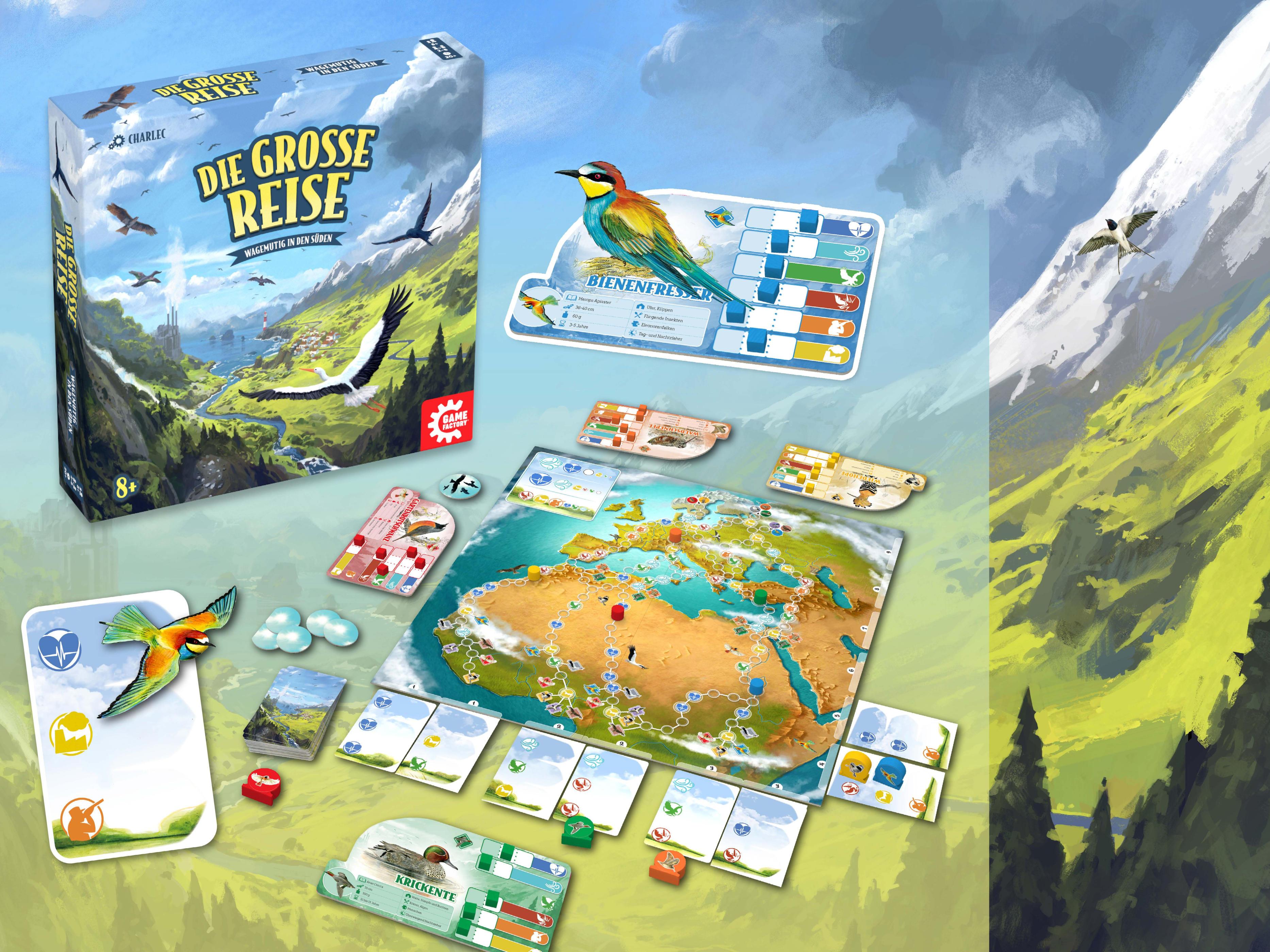Hast du dich jemals gefragt, wie es so ist, als Zugvogel über tausende Kilometer zu deinem Winterquartier zu reisen? Wag dich auf Die große Reise und nde es heraus! Trotze den unzähligen Gefahren, die dich auf dem Weg erwarten und wähle die beste Flugstrategie, um als Erster im lauschigen Süden anzukommen. Pass dich dabei deiner Vogelart an und riskiere genug, um richtig schnell voranzukommen – aber besser nicht so viel, dass du auf der Strecke bleibst …