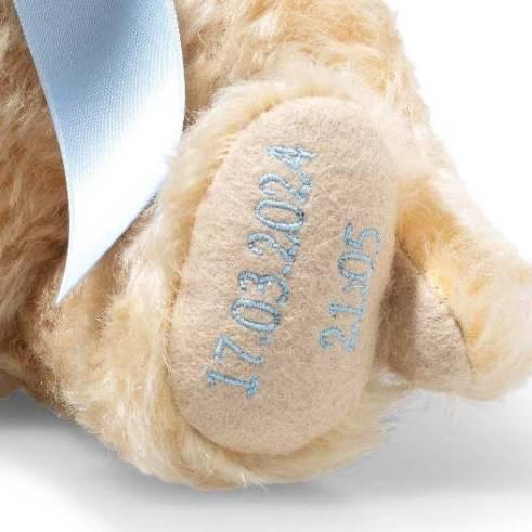Teddybär mit individueller Schleife und Sohlenbestickung